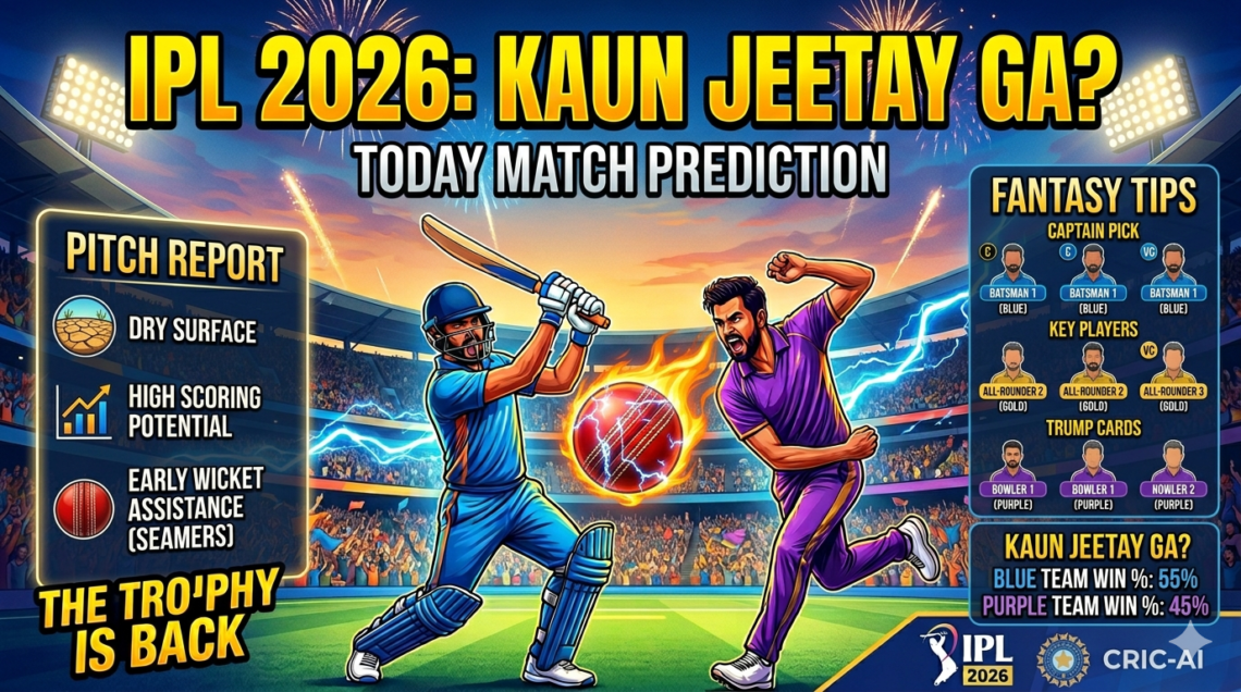 IPL 2026 Today Match Prediction: Kaun Jeetay Ga? Full Fantasy Tips & Pitch Report